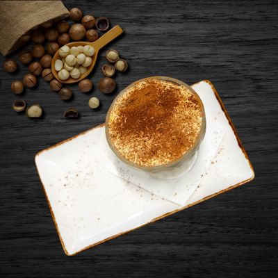 Layers of sponge cake soaked in coffee and brandy or liqueur with powdered chocolate and mascarpone cheese