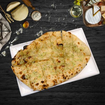 Toasted bread topped with garlic butter, melted mozzarella, finished with a sprinkle of herbs. Perfectly cheesy and savory!