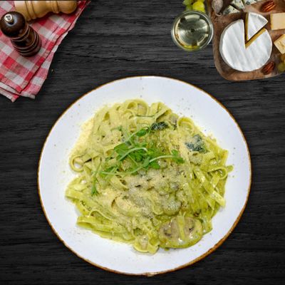 Sauteed chicken breast w' creamy mushroom and pesto sauce