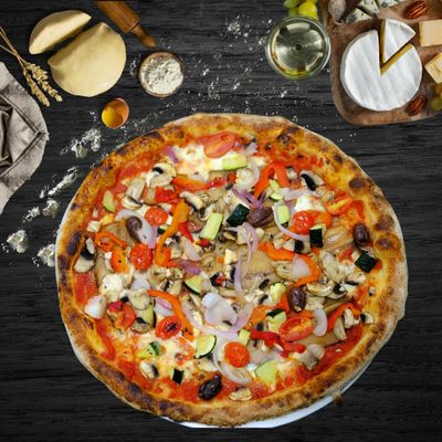 Tomato sauce, mozzarella, grilled eggplant, zucchini, fresh cherry tomato, capsicum, mushrooms, onion, olives