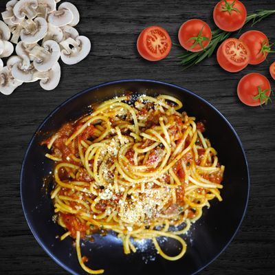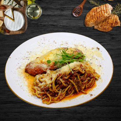 Classic spaghetti topped with a hearty, slow-cooked beef ragu in a rich tomato sauce. Comfort food at its best!