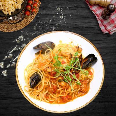 Mix of prawns, calamari & fish in a Napoletana & fresh cherry tomato sauce w/ chilli