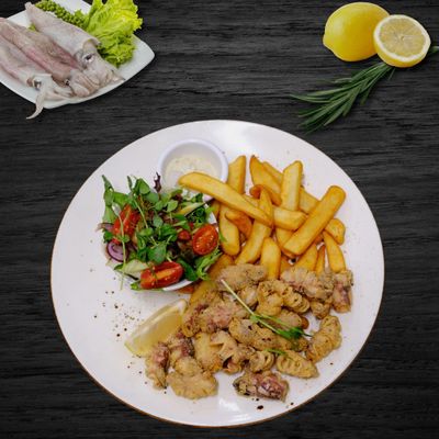 Tomato sauce, mozzarella, prawns, squid, mussels, with a hint of garlic sprinkled with fresh chopped parsley & chilli